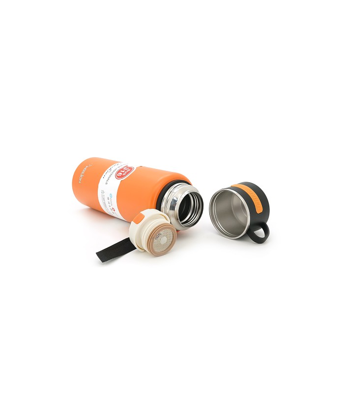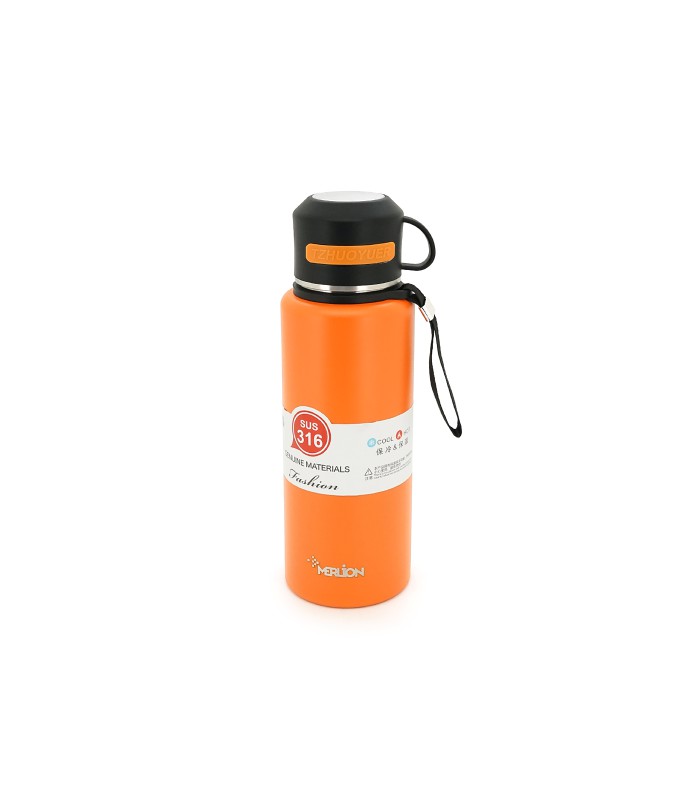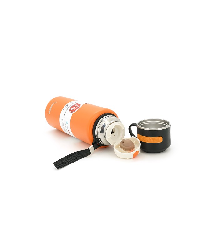 Термос Merlion из нержавеющей стали, с чашкой в чехле и ручкой для переноски, объем 1000 мл., оранжевый