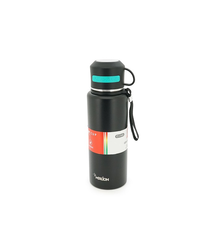 Термос Merlion из нержавеющей стали, с чашкой в чехле и ручкой для переноски, объем 1000 мл., черный