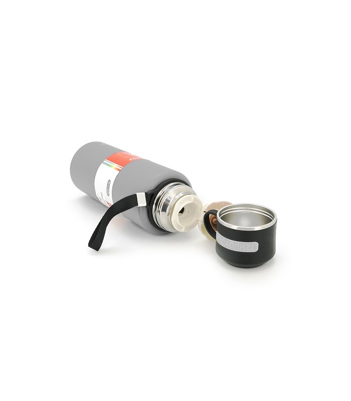 Термос Merlion из нержавеющей стали, с чашкой в чехле и ручкой для переноски, объем 1000 мл., серый