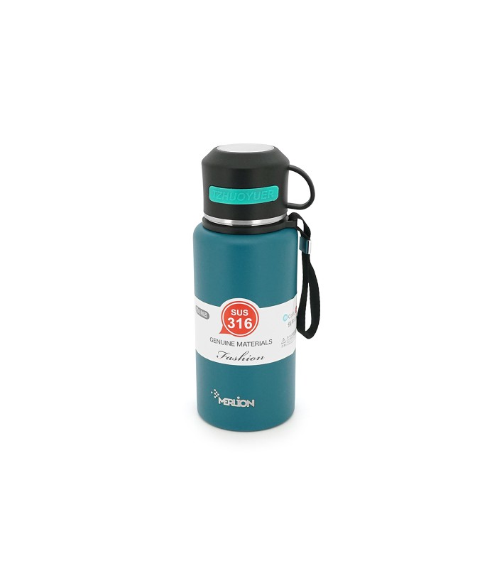 Термос Merlion из нержавеющей стали, с чашкой в чехле и ручкой для переноски, объем 800 мл., синий