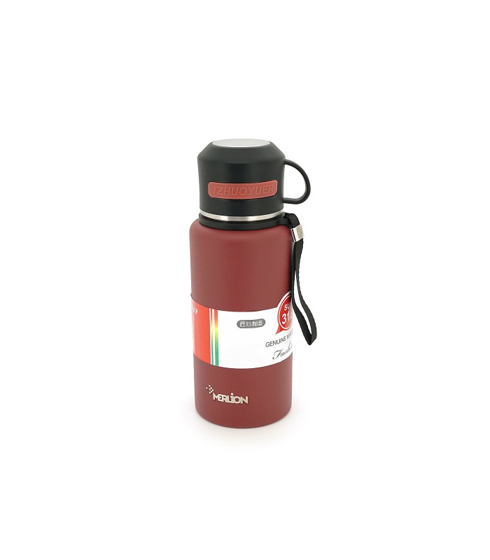 Термос Merlion из нержавеющей стали, с чашкой в чехле и ручкой для переноски, объем 800 мл., бардовый