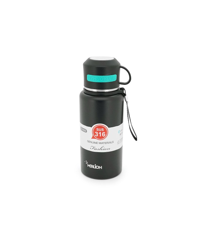 Термос Merlion из нержавеющей стали, с чашкой в чехле и ручкой для переноски, объем 800 мл., черный
