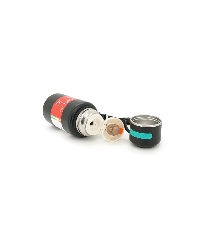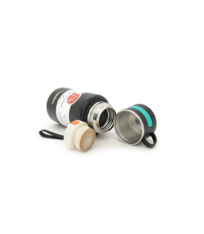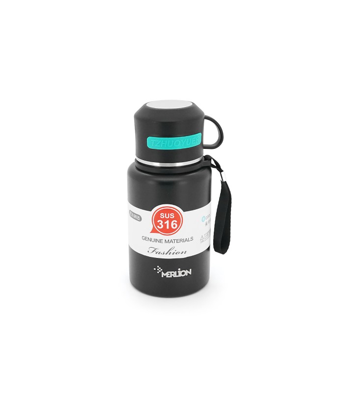 Термос Merlion из нержавеющей стали, с чашкой в чехле и ручкой для переноски, объем 600 мл., черный
