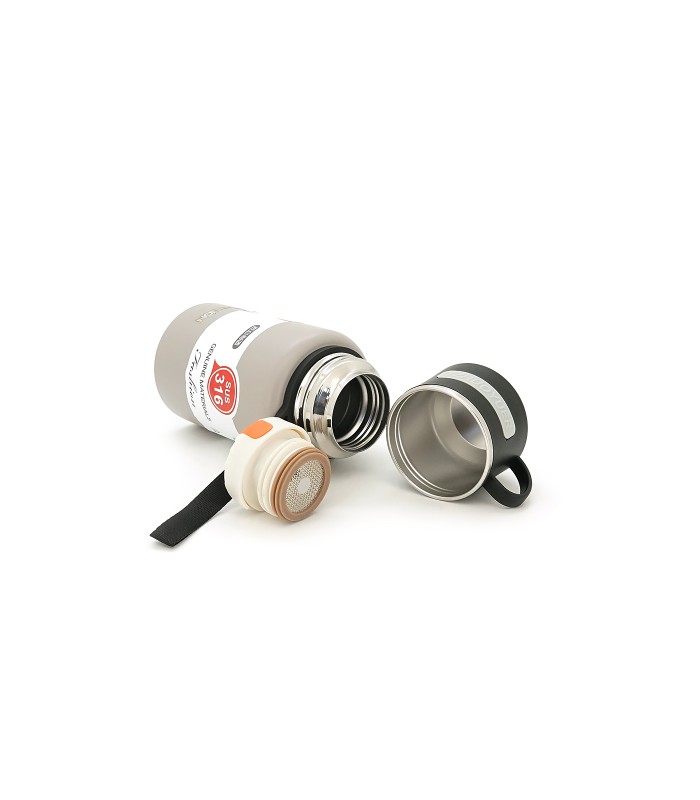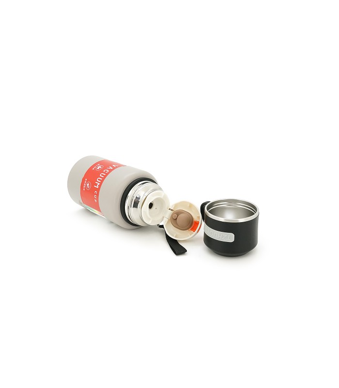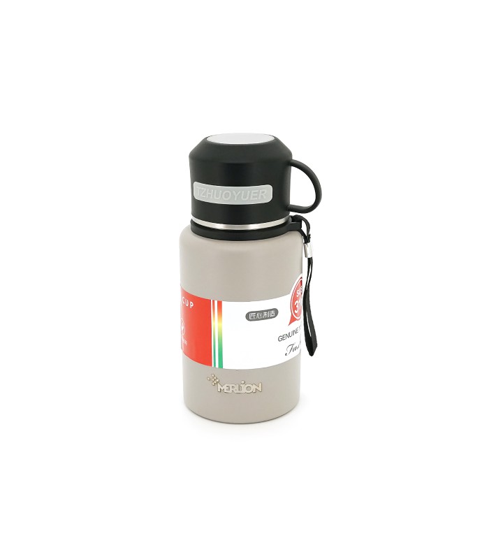 Термос Merlion из нержавеющей стали, с чашкой в чехле и ручкой для переноски, объем 600 мл., серый