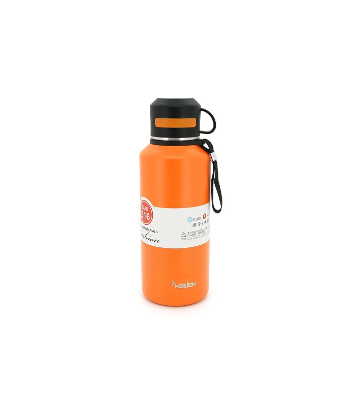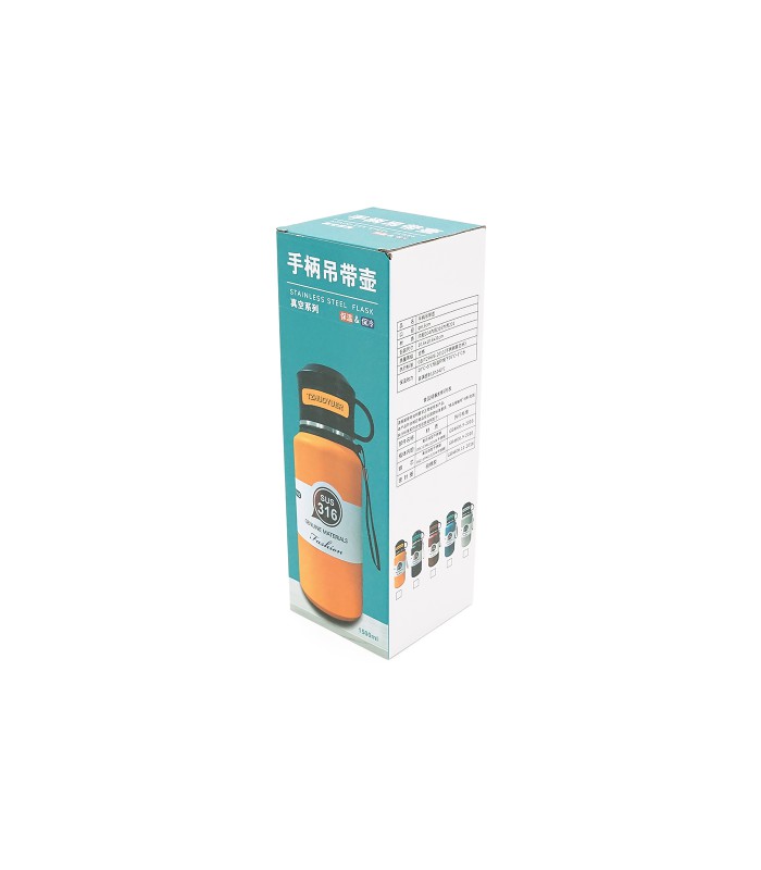 Термос Merlion из нержавеющей стали, с чашкой в чехле и ручкой для переноски, объем 1500 мл., оранжевый