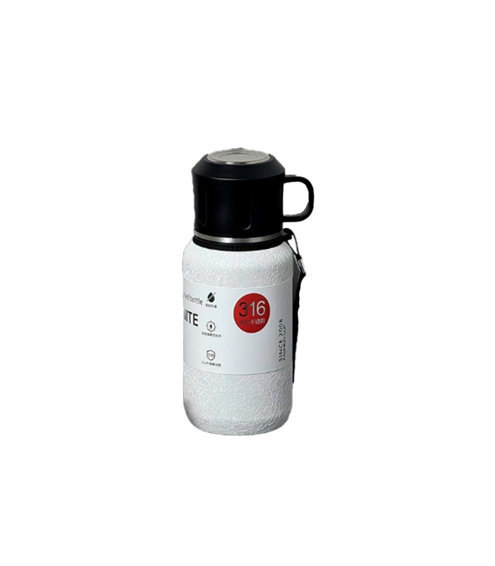 Термос Merlion из нержавеющей стали, с чашкой и ручкой для переноски, объем 1500 мл., белый