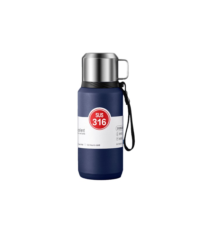 Термос Merlion из нержавеющей стали, с чашкой и ручкой для переноски, объем 800 мл., синий