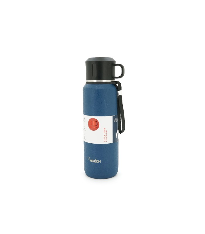 Термос Merlion из нержавеющей стали, с чашкой и ручкой для переноски, объем 1000 мл., синий