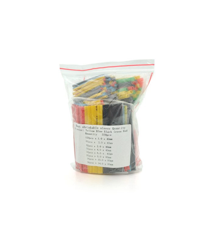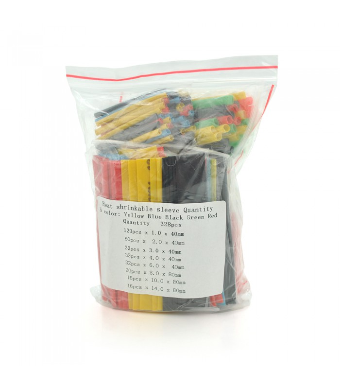 Комплект термоусадочной трубки 328 шт. разных размеров, используемых при монтаже и ремонте проводов, кабеля. Набор термосадов имеет 8 разных диаметров от 1 мм до 14 мм разных цветов (цвет бывает случайным).