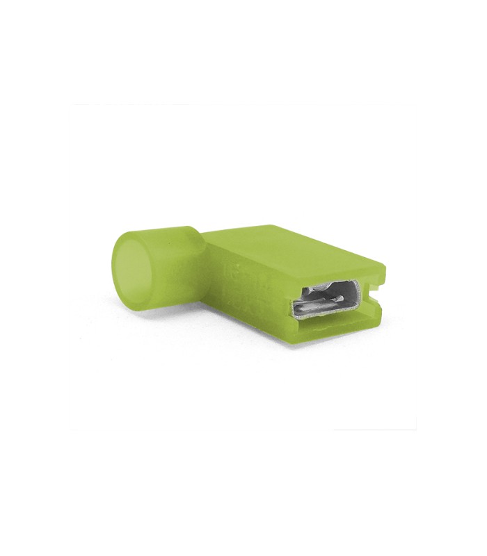 Наконечник кабельный угловой ножевой (гнездо) предназначен для использования в электрических соединениях. Он полностью изолирован и имеет угловую форму, что обеспечивает удобство при подключении кабелей.