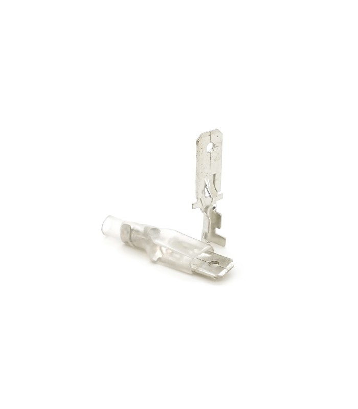 Клемма F2 (папа), 6.3мм, провод 0.5-2.5 - предназначена для электромонтажа. Взаимодействует с клеммой типа 'мама' вставляются в колодку или обжимаются на проводе. Быстро, надежно и без проблем.