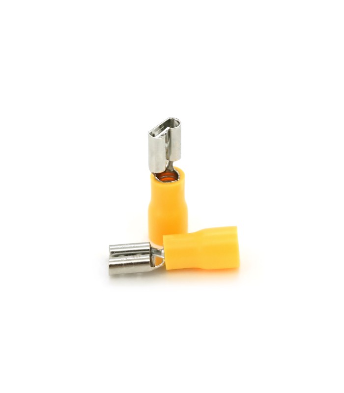 Разъем виброустойчивый плоский FDD5.5-250 предназначен для подключения проводов диаметром от 4.0 до 6.0 мм. Изготовлен из изолирующего материала и латуни. В упаковке содержится 100 штук данного разъема.