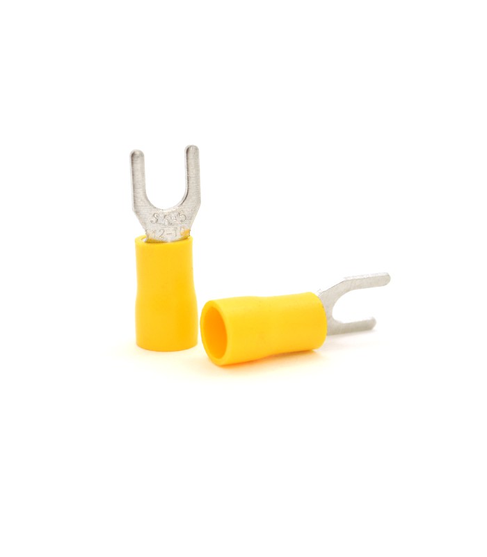 Клемма тип 'U' 0.7мм, провод 4.0-6.0 (вилочная) - применяется для создания соединения многожильных медных проводов в электропроводке или подвижных системах(автомобиль, поезд). Данный тип клем хорош тем, что при желании можно разъединить соединение без полного снятия крепежных элементов.