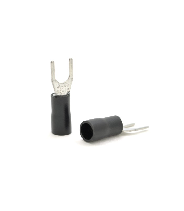 Клемма тип 'U' 0.7мм, провод 2.5-4.0 (вилочная) - применяется для создания соединения многожильных медных проводов в электропроводке или подвижных системах(автомобиль, поезд). Данный тип клем хорош тем, что при желании можно разъединить соединение без полного снятия крепежных элементов.