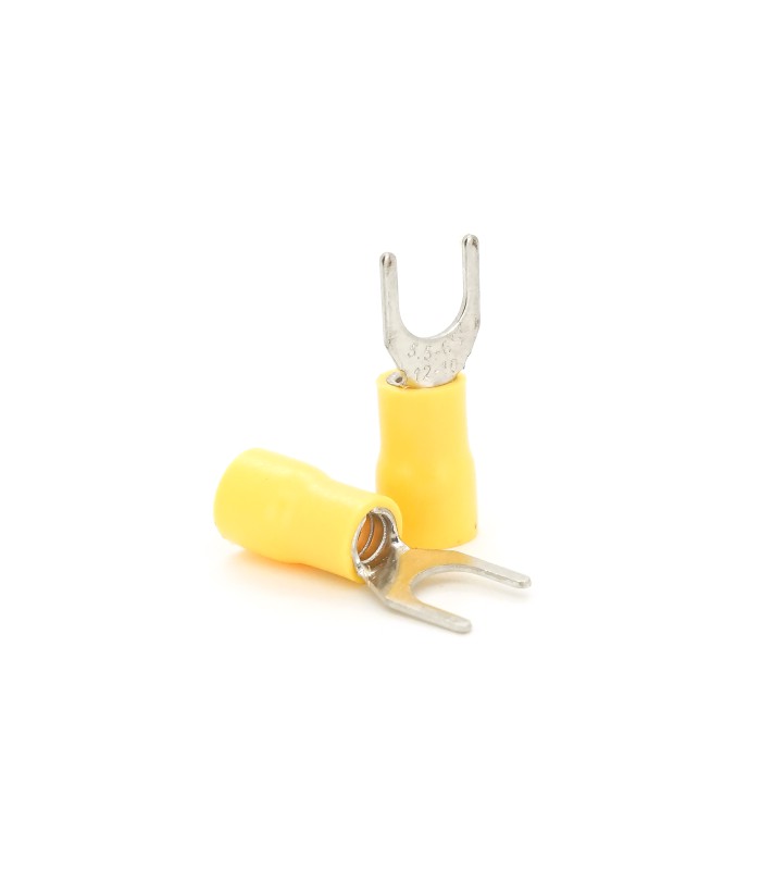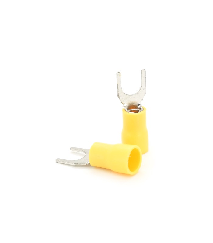 Это упаковка из 100 изолированных клемм типа 'U' с максимальным током 48А. Они подходят для проводов диаметром от 4.0 до 6.0 мм и предназначены для обжимки. Клеммы изготовлены из латуни и имеют длину 0.7 мм. Цена указана за упаковку.