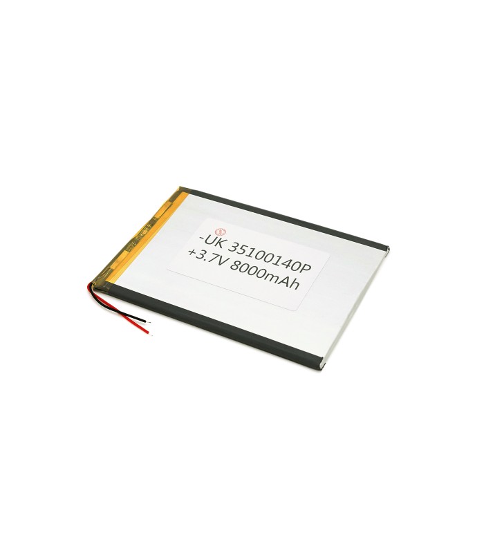 Литий-полимерный аккумулятор размером 3.5 * 100 * 140 мм с характеристиками Li-ion 3.7 В 8000 мА·ч представляет собой компактный источник питания с очень высокой емкостью. Вот основные характеристики и описание:
