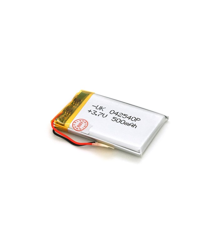 Литий-полимерный аккумулятор размером 4 * 25 * 40 мм с характеристиками Li-ion 3.7 В 500 мА·ч представляет собой компактный источник питания с небольшой емкостью. Вот основные характеристики и описание: