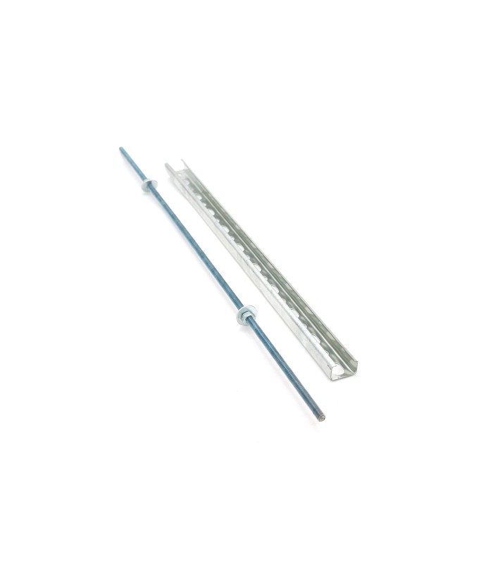В комплекте, кроме перфорированной планки, входят: резьбовая шпилька, длиной 1000 мм, две гайки с резьбой М8 и две шайбы.
