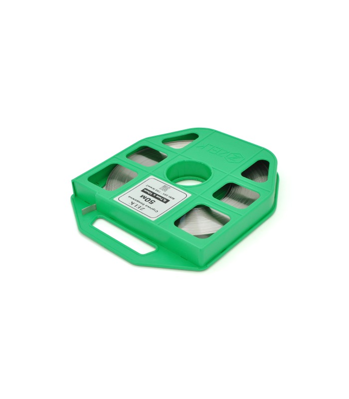 Выполнена бандажная лента из нержавеющей стали, но при этом она остается гибкой, прочной и удобной в использовании. Поставляется в защитной кассете, способствующей компактному хранению