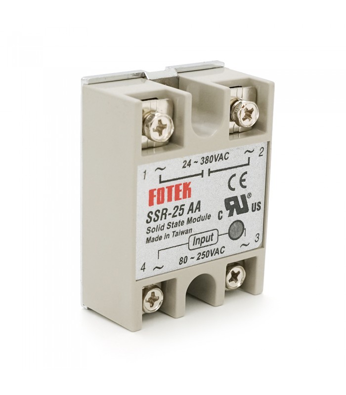Твердотельне реле Fotek SSR-25AA 25А 24-380В AC - це пристрій, який використовується для перемикання електричного струму без використання механічних контактів, завдяки чому він забезпечує менший знос, більшу надійність та довговічність у порівнянні з традиційними електромеханічними реле.