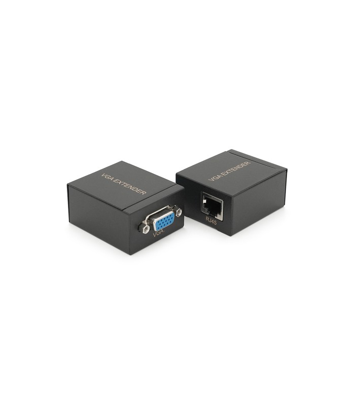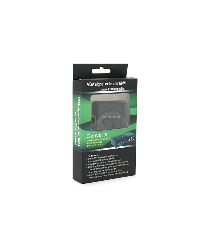 Пассивный удлинитель VGA сигнала до 60 метров по витой паре Cat5e/6e, черного цвета, в корпусе.