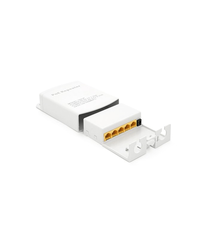 POE удлинитель-делитель уличный RITAR 1/4 ( 1 Вх -4 Вых, 10/100Mpbs POE ) 44-57V- 24W, Вход доп питания 12-52V , BOX 140x100x35m