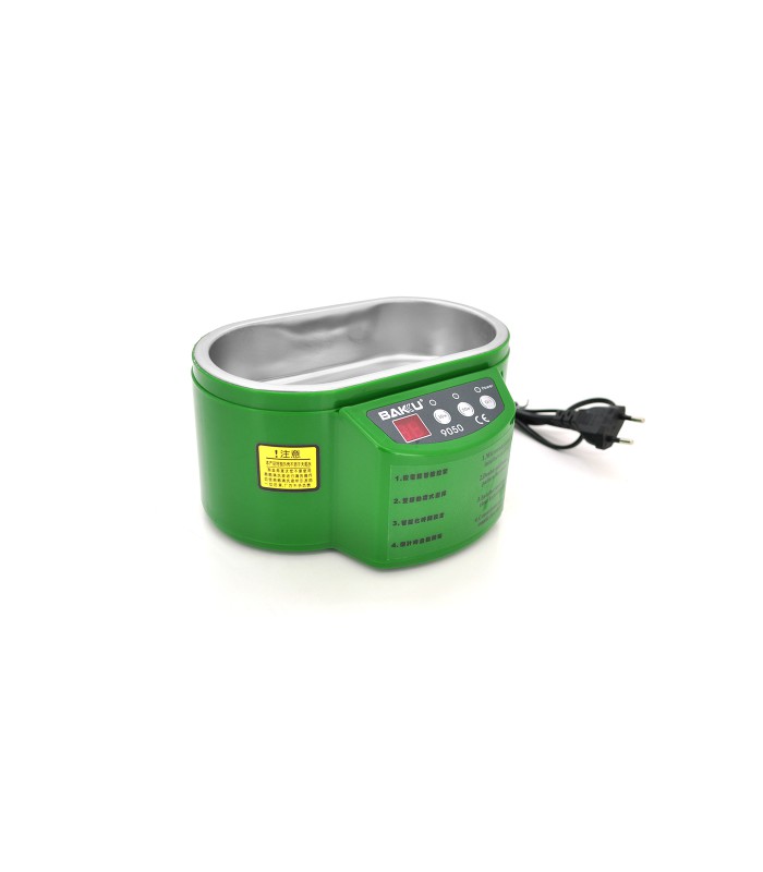Небольшая экономичная ультразвуковая ванна BAKU BK9050 – производит бесконтактную очистку загрязненных предметов с помощью ультразвука. Ультразвуковую ванну с успехом используют в своей работе ювелирные и часовые мастерские, сервисные центры мобильных телефонов, радиолюбители при очистке плат и многие другие. В такой ванне можно производить очистку даже простой водой. Рекомендуем все же использовать дополнительно химические средства для повышения эффективности и ускорения процесса.