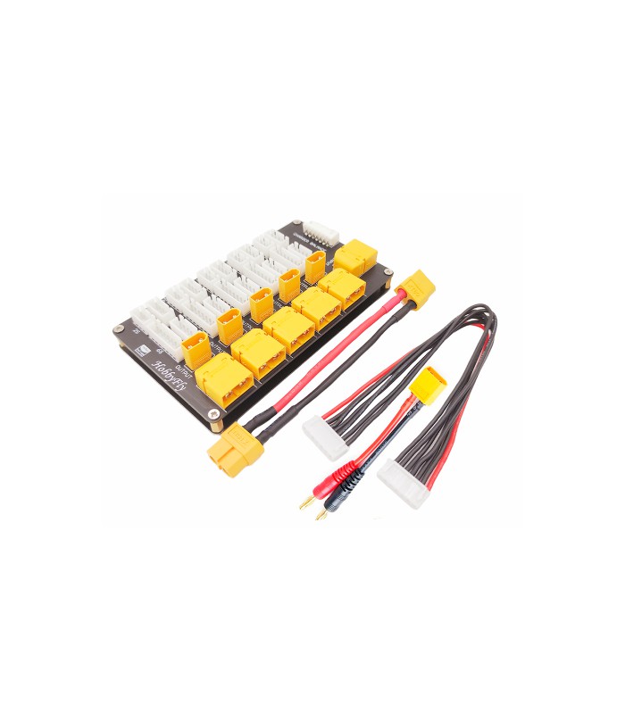 - Аккумуляторы подключаются параллельно к плате через разъемы XT60 и XT30.