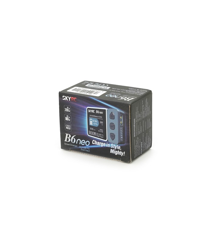 SKYRC B6Neo — это универсальное зарядное устройство профессионального уровня, предназначенное для зарядки различных типов аккумуляторных батарей, включая LiPo, LiFe, LiIon, NiMH, NiCd и Pb. Оно отличается высокой мощностью (200 Вт), высоким выходным током (10 А) и поддержкой балансировки до 6 ячеек.