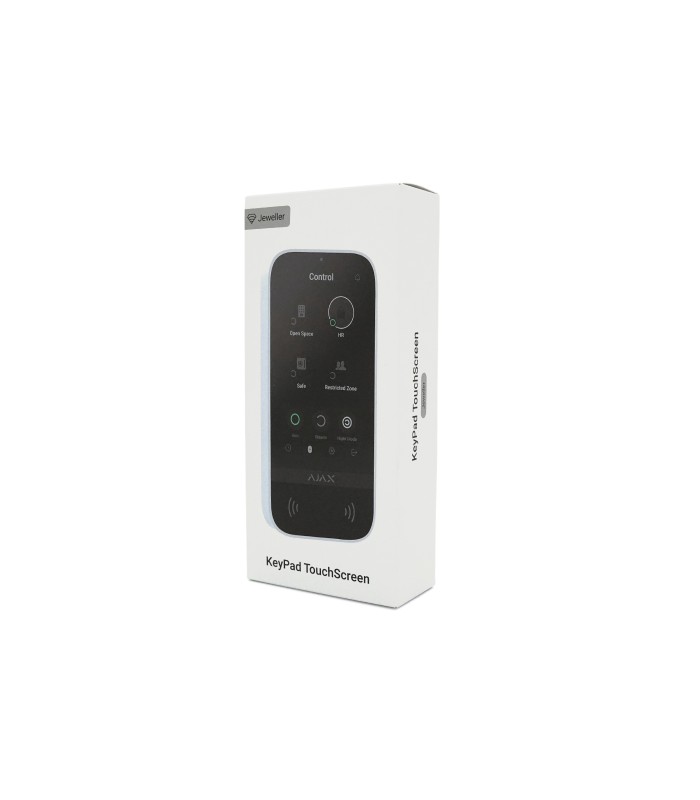 KeyPad TouchScreen – беспроводная клавиатура с сенсорным экраном для управления системой Ajax. Пользователи могут аутентифицироваться с помощью смартфонов, брелок Tag, карт Pass и кодов. Устройство предназначено для установки в помещении.
