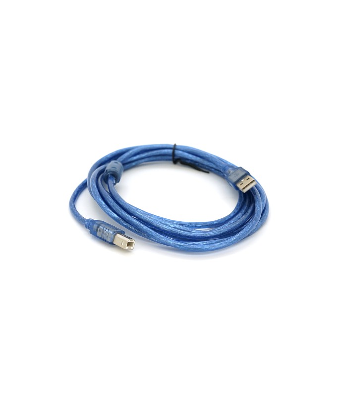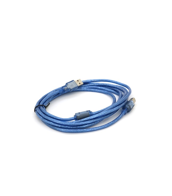 Этот кабель USB 2.0 имеет разъемы типа A Male и B Male, что позволяет подключать устройства с разными разъемами. Длина кабеля составляет 3.0 метра, что обеспечивает удобство при подключении устройств на большом расстоянии. Присутствие феррита на кабеле помогает в снижении помех и электромагнитных интерференций. Цвет кабеля - прозрачный синий.