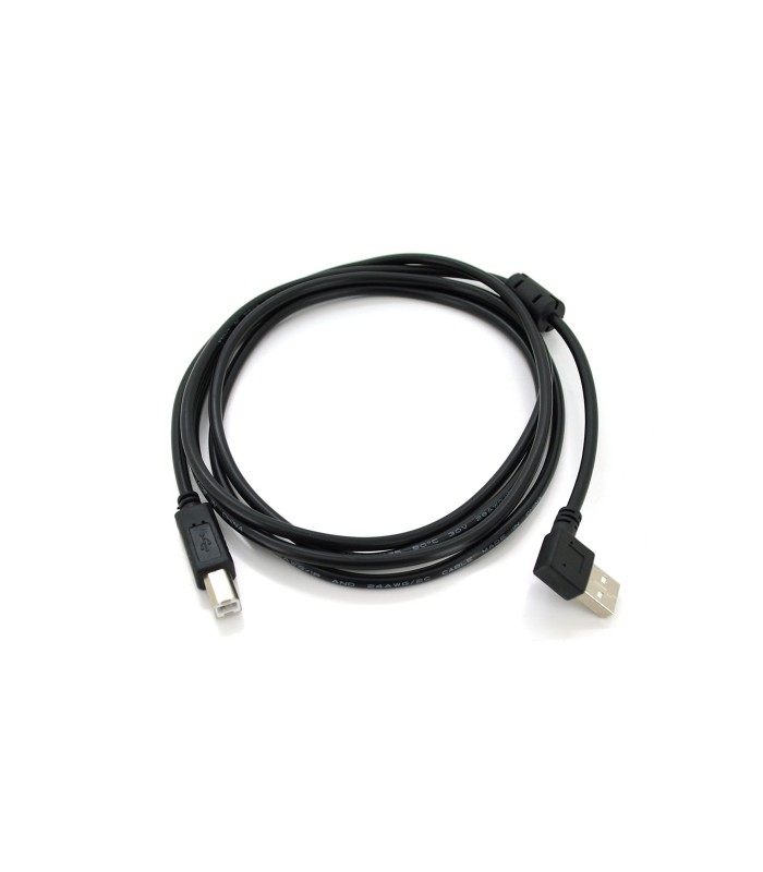 Кабель USB 2.0 RITAR AM/BM, 1.5м, угловой 90°, черный, предназначен для подключения устройств к компьютеру или зарядки электронных устройств.