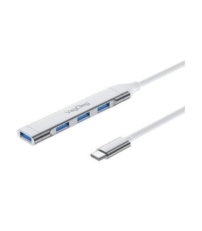 Хаб VEGGIEG V-K301 Type-С на USB 3.0/4 порта, 480Mbts, питание от USB, 0.15m, Silver, Box