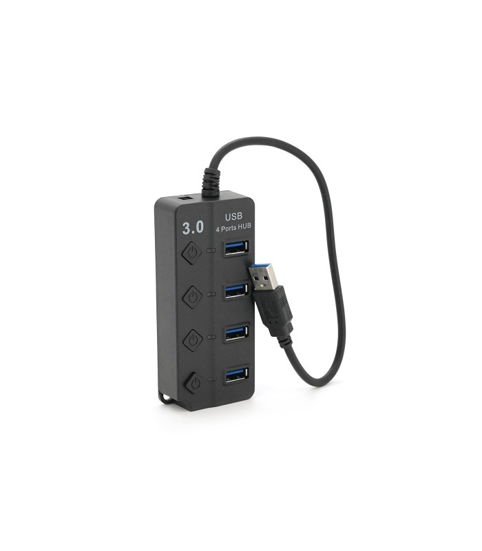 Хаб USB 3.0 4 порта, Black, 5Gb/s питание от USB, с кнопкой LED/Blue на каждый порт, Blister