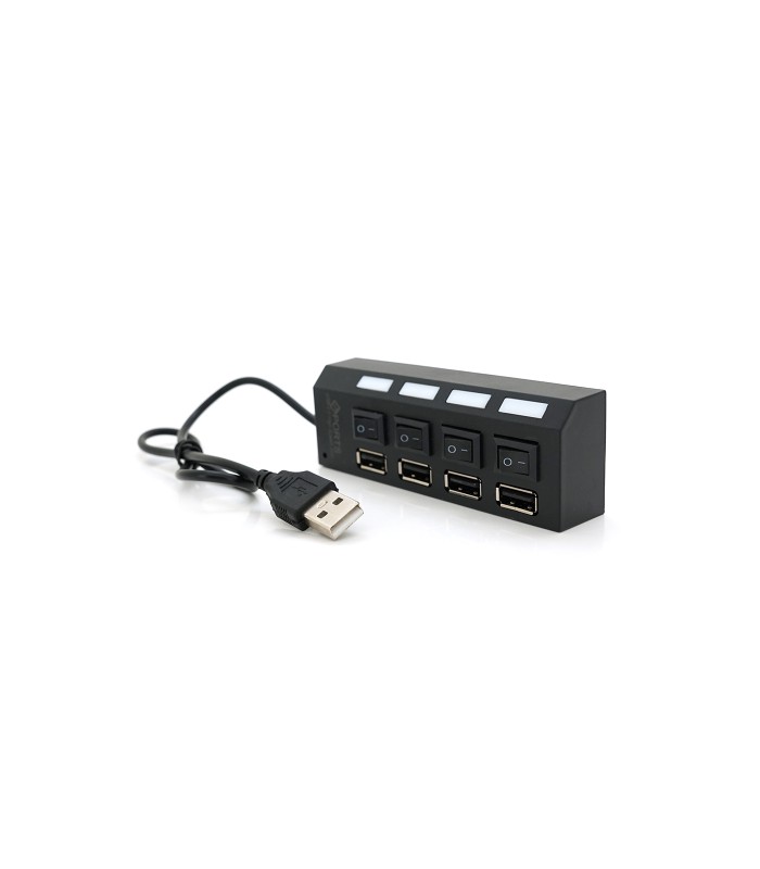 Компактный USB-концентратор с четырьмя портами и удобными переключателями для каждого из них. Позволяет легко подключать и отключать устройства без необходимости извлекать их из портов. Идеальное решение для расширения возможностей ноутбуков и ПК с ограниченным количеством USB-разъемов.