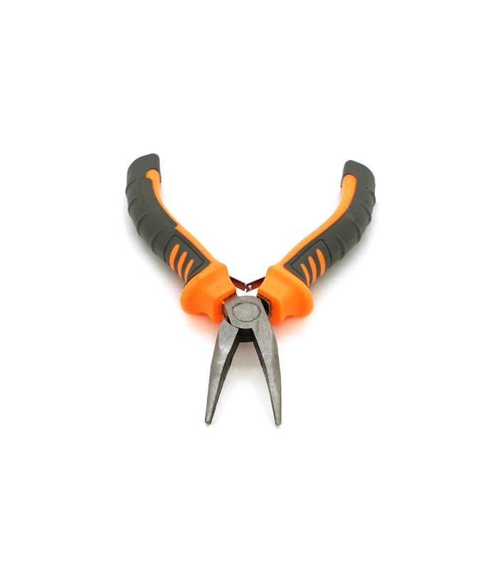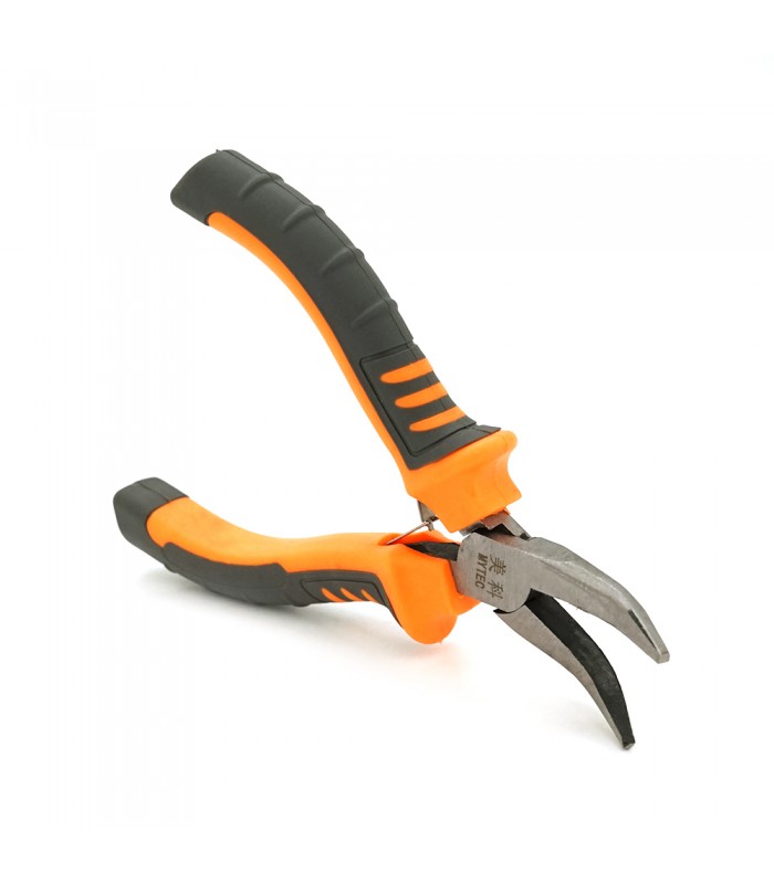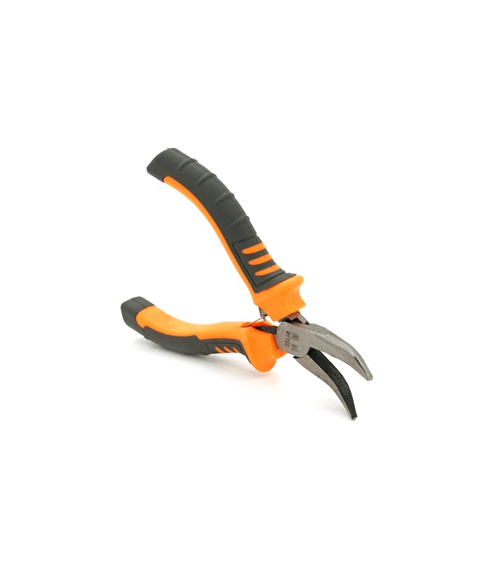 Длинногубцы изогнутые отлично подходят для мелких работ по изгибанию и извлечению деталей. У них серо-оранжевые ручки, длиной 125 мм, и они весят 55 грамм.