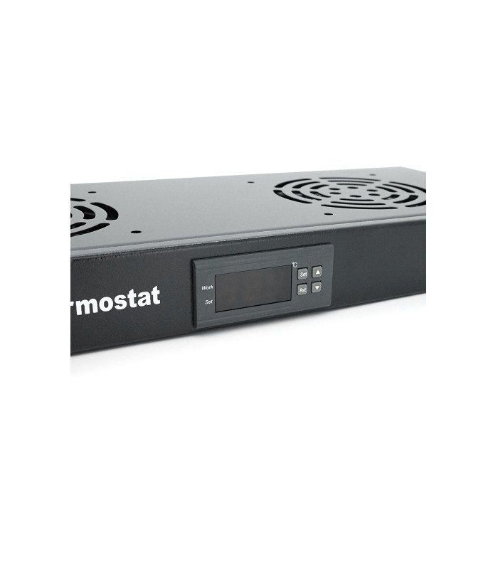 2. Цифровой термостат: Встроенный цифровой термостат позволяет точно контролировать температуру внутри серверного шкафа, автоматически регулируя скорость вентиляторов для поддержания заданного температурного режима.