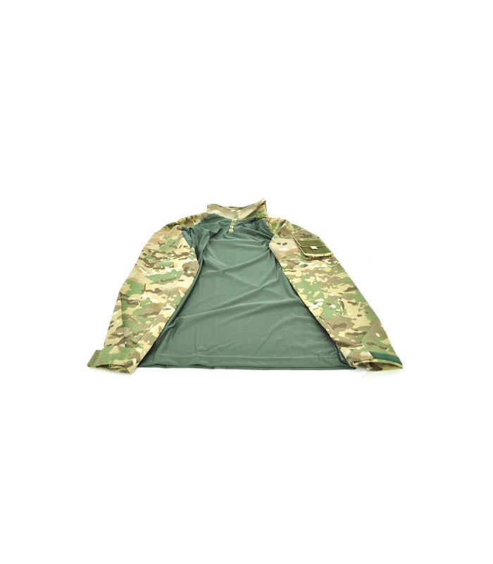 Тактическая рубашка Ubacs чаще всего используется для ношения под бронежилетом. Также его можно носить открыто, одевать под куртку или кофту. Материал рукава – 70% хлопок, 30% полиэстер. Такой материал прочен, приятен к телу, хорошо отводить воздух. Основная часть убакс – сетчатый дышащий материал Coolmax из 100% полиэстера. Он мягкий на ощупь, быстро отводит пот от тела и пропускает воздух. Воротник - стойка снабжена молнией, позволяющей держать горло открытым, манжеты регулируются с помощью специальных липучек. На рукавах имеются тактические накладные карманы с клапанами на липучках. На них размещены платформы велкро для крепления шевронов.