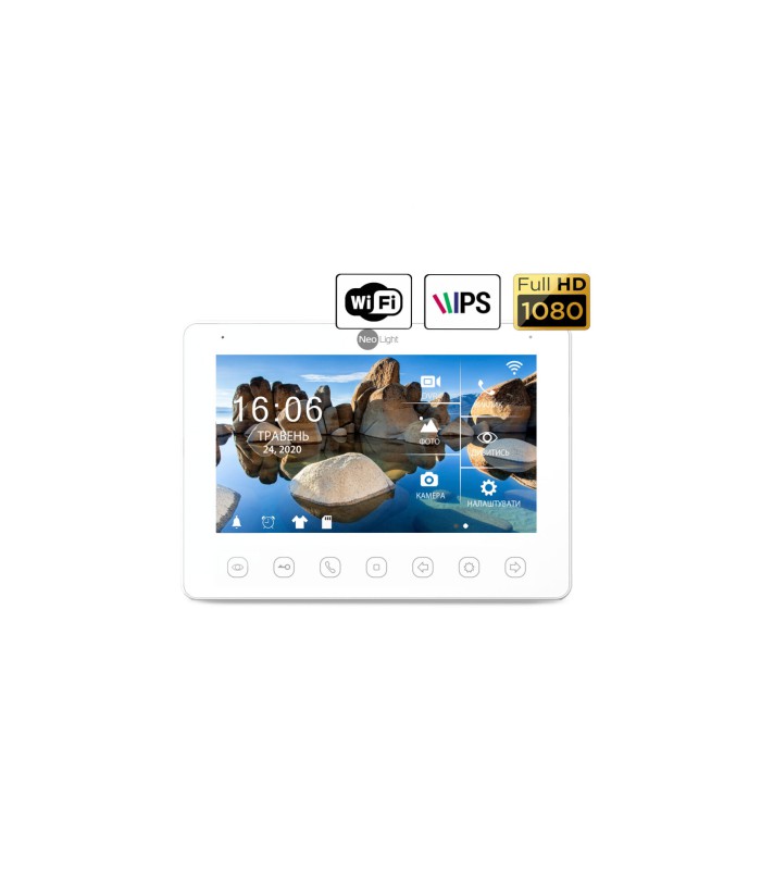 NeoLight Omega+ HD WF — это Wi-Fi видеодомофон с поддержкой Full HD сигнала с разрешением 1080р (1920х1080), IPS экраном с высоким разрешением 1024 х 600, записью видео и аудио по движению и любимой mp3 мелодией на вызов. Монитор позволяет переадресовывать вызов с видеопанели на приложение «NeoLight» (iOS, Android), установленное на смартфоне или планшете. Для корректной работы необходимо стабильное интернет-подключение в помещении, где находится домофон. Для соединения Omega+ HD WF с роутером можно использовать Wi-Fi или LAN соединение.