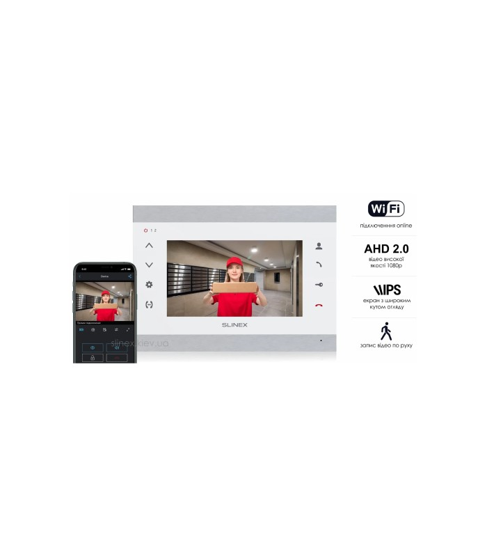 Модель имеет 7 дюймовый IPS экран, что позволяет легко рассмотреть происходящее на улице или в помещении. SL‑07N Cloud очень удобен в использовании тем, что возможно подключение к Интернету по Wi-Fi или Ethernet для управления с помощью приложения на вашем мобильном телефоне, планшете или из браузера ПК.