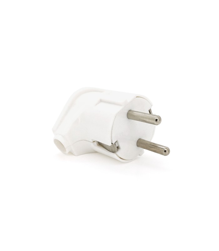 Вилка с заземлением угловая европейского стандарта. Корпус изготовлен из высококачественного пластика. Провод легко подключается и не выпадает благодаря специальному зажиму на конце вилки.