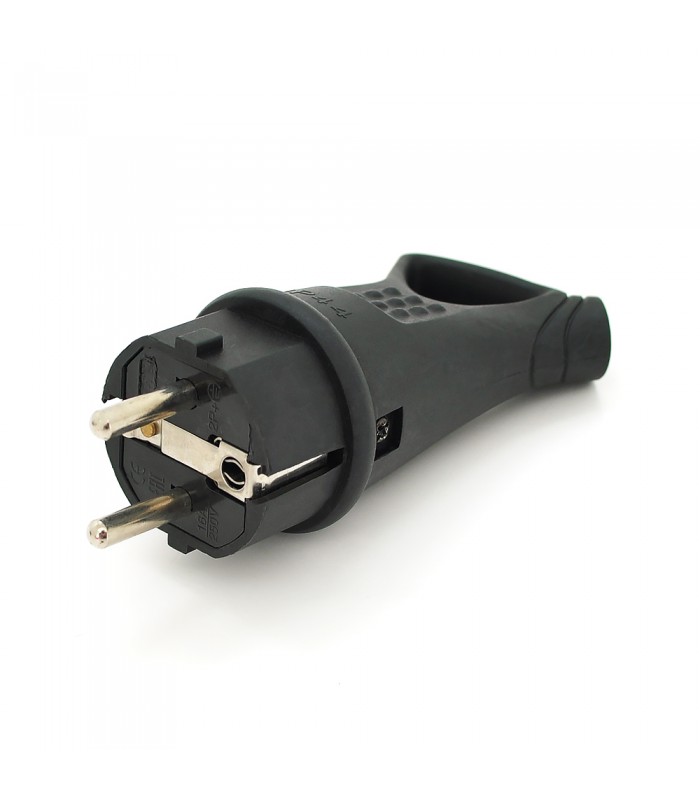 Вилка каучукова із заземленням чорного кольору. Корпус виготовлений із каучуку, що дає додатковий захист від вологи.