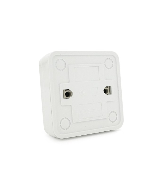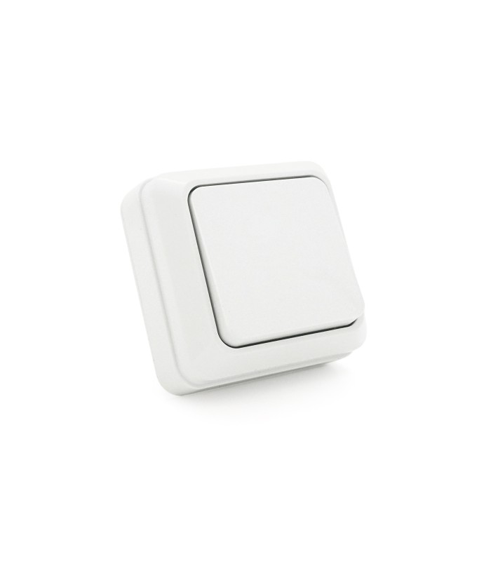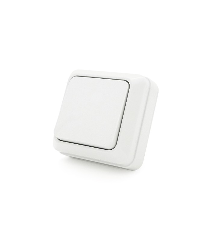 Выключатель одинарный наружного монтажа, выполнен в белом цвете.