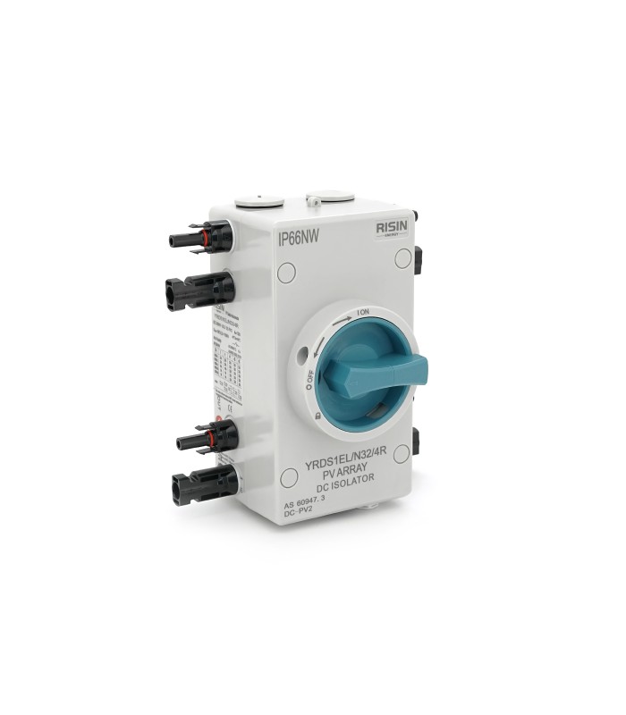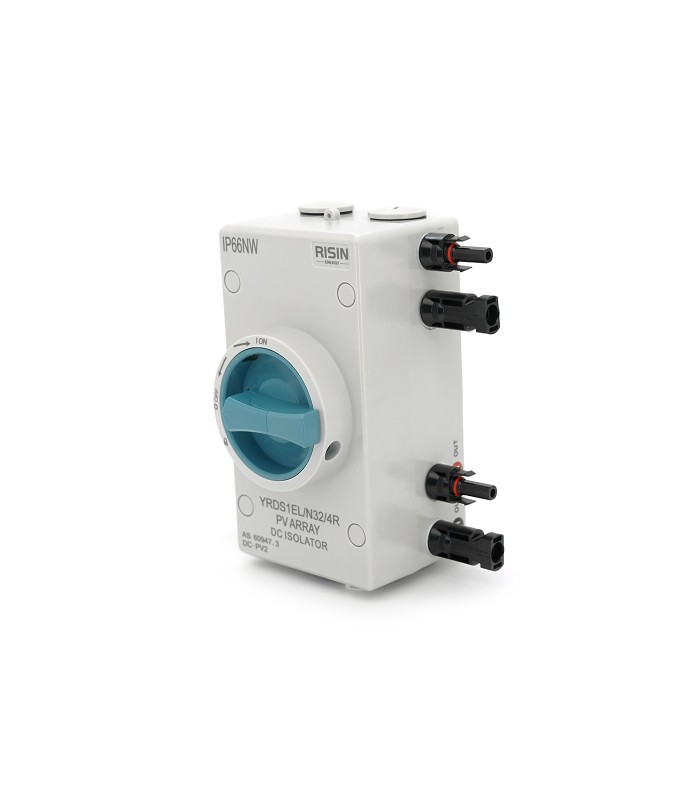 Ручной выключатель Risin предназначен для использования в системах электропитания с напряжением до 1000V. Он имеет номинальный ток 32A и 4 полюса. Защита от пыли и влаги соответствует классу IP66. Выключатель оснащен входом с лево-правым подключением и имеет серый цвет.