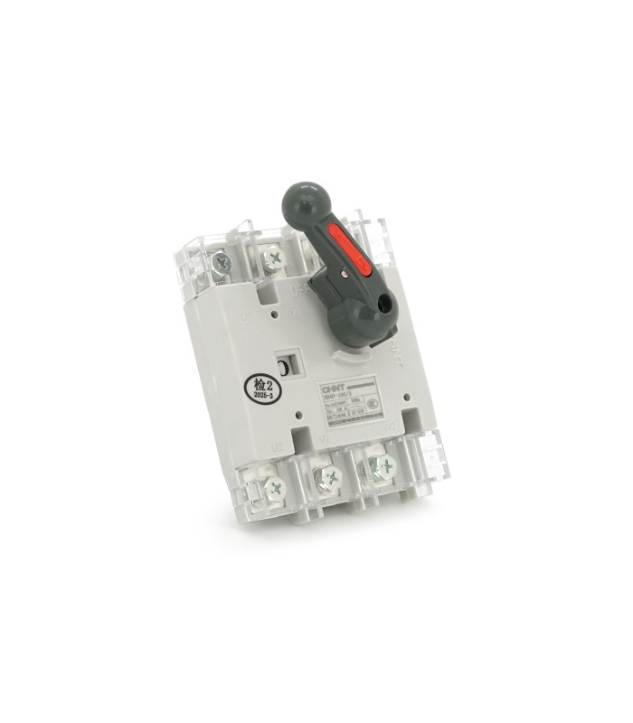 Ручной выключатель-разъединитель CHINT NH40-100/3P — это трехполюсный рубильник, предназначенный для безопасного коммутирования электрических цепей и создания видимого разрыва цепи. Устройство применяется в качестве основного или аварийного выключателя в распределительных щитах промышленных и коммерческих объектов для полного обесточивания оборудования при проведении технического обслуживания, ремонтных работ или в аварийных ситуациях. Благодаря ручному управлению и четкой индикации положения ('включено'/'отключено') обеспечивается безопасность персонала.