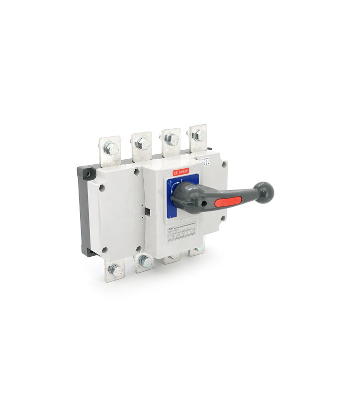 Ручной выключатель-разъединитель CHINT NH40-630/4P представляет собой четырехполюсное коммутационное устройство ручного управления, предназначенное для оперативного включения и отключения электрических цепей под нагрузкой. Модель рассчитана на номинальное напряжение 380V и токовую нагрузку до 630A. Устройство обеспечивает видимый разрыв цепи, что соответствует функции разъединителя, и комплектуется стандартной рукояткой для удобного управления.