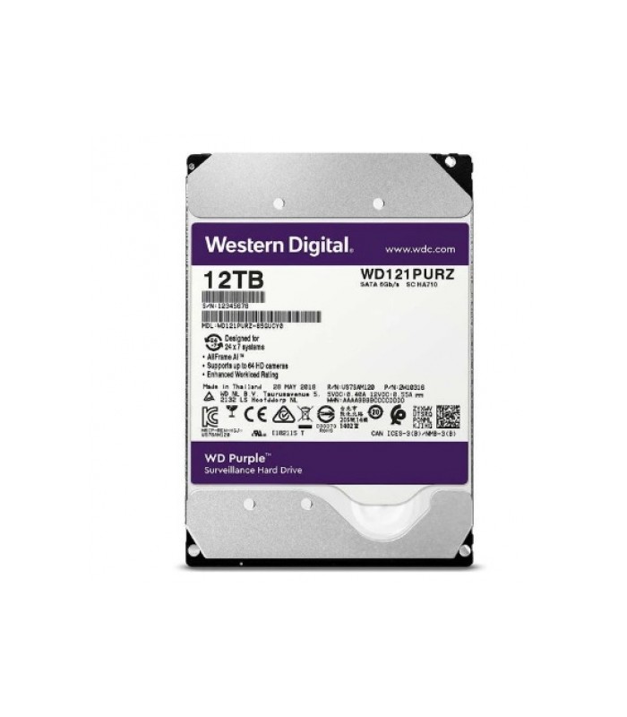 Жорсткий диск WD Purple (WD121PURZ) володіє простором для зберігання інформації в кількості до 12000 ГБ, завдяки інтерфейсу SATA 3.0 передача даних здійснюється зі швидкістю до 600 Мбайт / сек. У свою чергу швидкість шпинделя може доходити до 7200 оборотів в хвилину. Крім того, жорсткий диск WD Purple (WD121PURZ) налічує 256 МБ в обсязі буфера обміну і вистоїть при 300 000 циклах перезапису, а форм-фактор, в якому він виготовлений, дорівнює 3,5 '.
