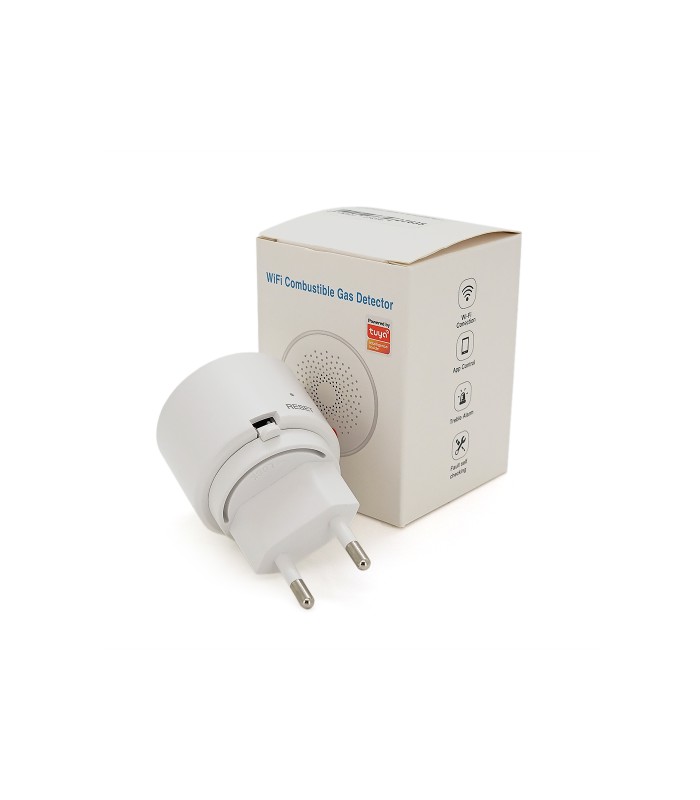 Умный беспроводной датчик обнаружения утечки природного газа (метана) это одна из лучших моделей на рынке для предотвращения утечки природного газа и возможных трагических последствий такой утечки. Может работать автономно, но для использования всех функций необходимо наличие сети WIFI 2.4ГГц для подключения к мобильной программе. Датчик работает с приложением TUYA. Приложение позволяет пользователю получать сообщения о срабатывании датчика, а также принять срочные меры для решения проблемы. Датчик может использоваться как ''самостоятельное'' устройство, а также в комплексе с другими устройствами системы ''Умный дом''. Сигнализатор газа работает от сети 80-250 Вольт и поэтому не требует никаких дополнительных элементов питания. Устройство нужно всего лишь включить в обычную розетку, у потенциального места утечки газа, например у газовой плиты. Устанавливать датчик лучше в радиусе 1-3 м от возможной утечки и не ближе 30 см от потолка в помещении.