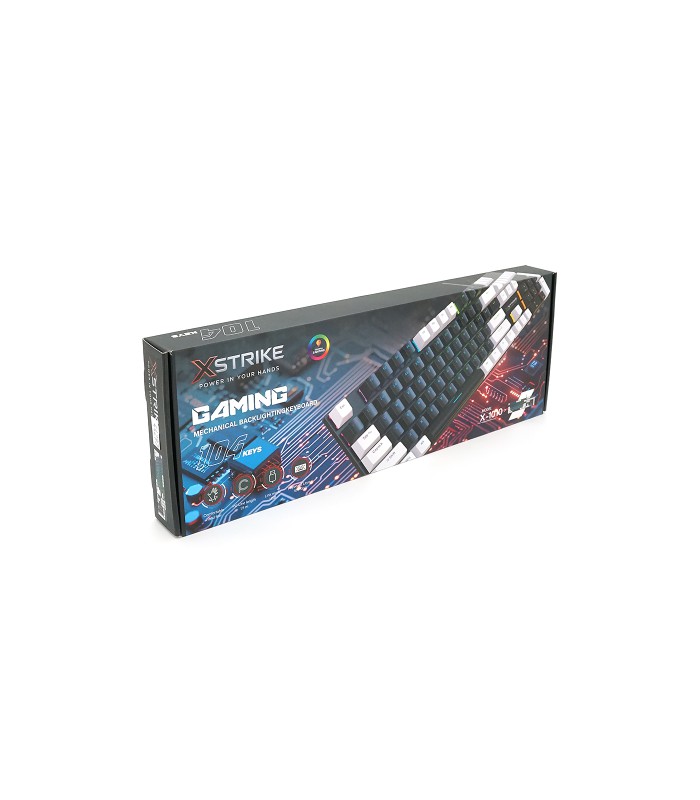 Механическая клавиатура USB XSTRIKE XS-1010, длина кабеля 150см, RGB подсветка, Eng/Укр/Рус, 465х165х45 мм, Black/White, 104к, Q