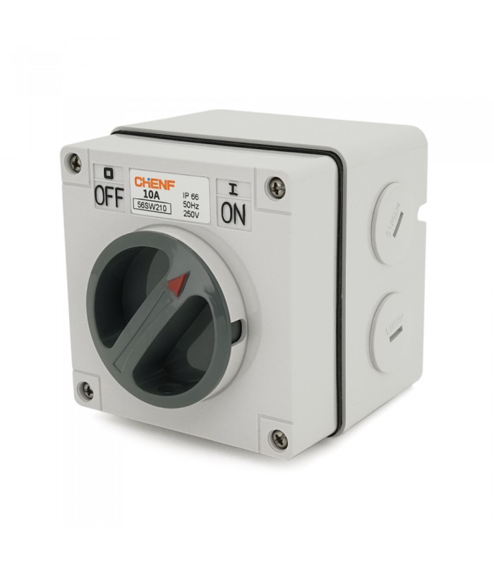 Опис: Перемикач ON/OFF Chenf призначений для використання в умовах високої вологості та пилу. Його захист IP66 забезпечує надійну роботу за будь-яких погодних умов. Цей перемикач має номінальну напругу 250V та номінальний струм 10A.